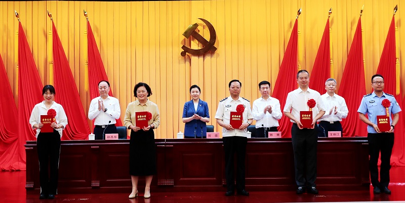 7月4日,司法部召开“光荣在党50年”纪念章颁发仪式暨“两优一先”表彰大会。摄影 李光印