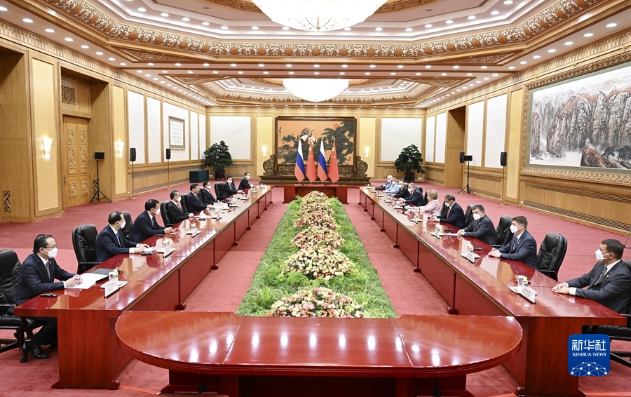 7月10日下午,国家主席习近平在北京人民大会堂会见俄罗斯联邦委员会主席马特维延科。新华社记者 张领 摄