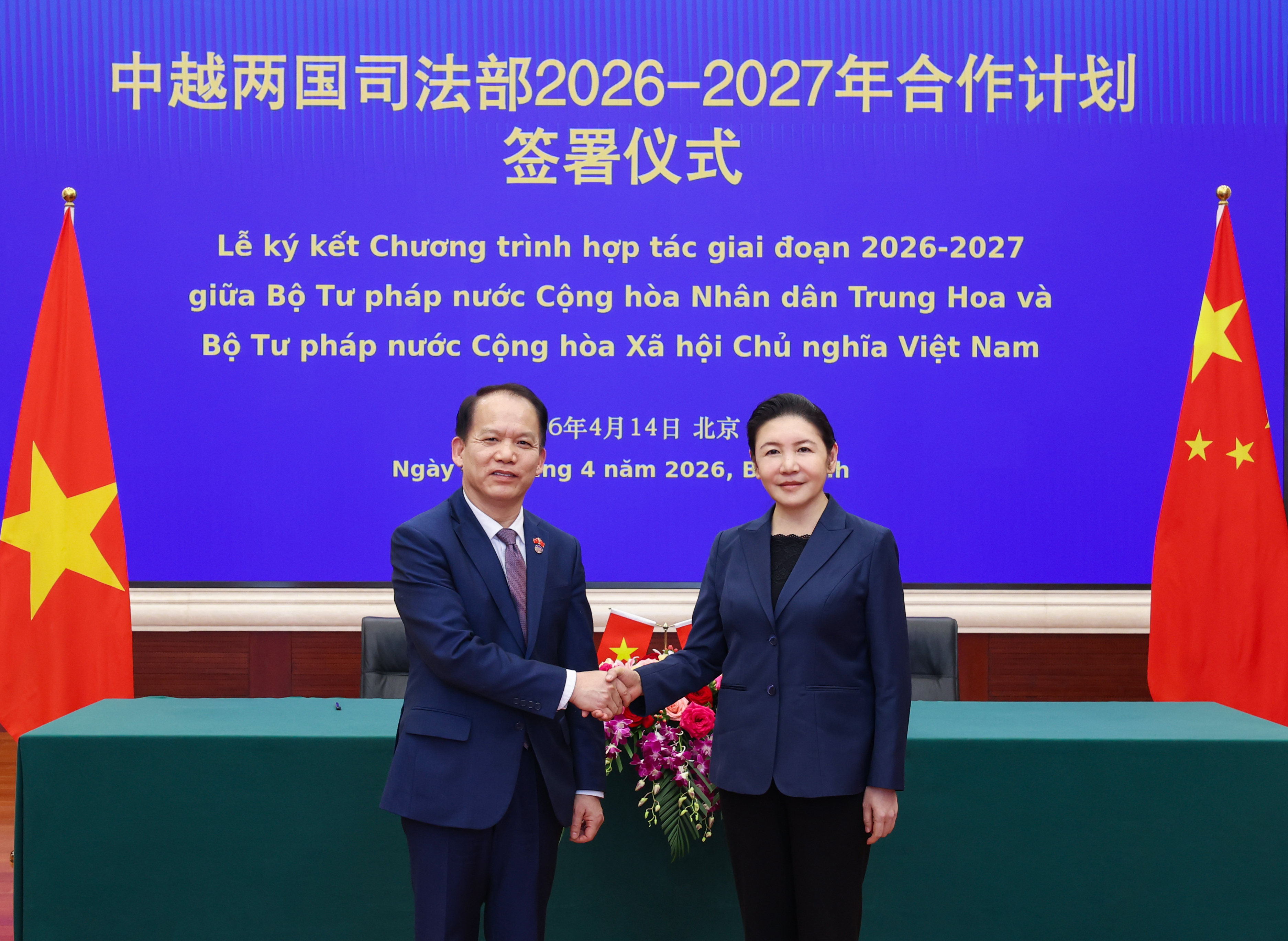 近日,司法部部长贺荣在京会见越南司法部部长黄青松一行。会见期间,双方签署了《中华人民共和国司法部与越南社会主义共和国司法部2026-2027年合作计划》。