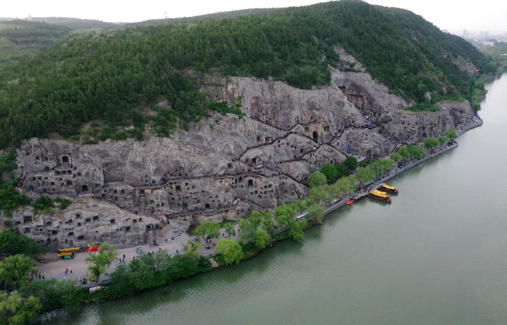 这是近日拍摄的洛阳龙门石窟(无人机照片)。新华社记者 李嘉南 摄