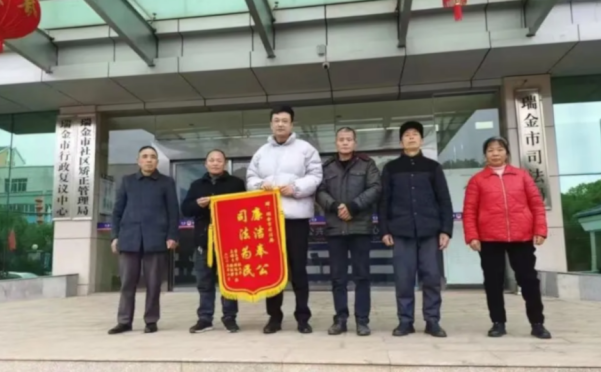 “多亏了你们,帮我们追回被拖欠的血汗钱!”农民工代表李师傅等5人满怀感激,将一面写着“廉洁奉公 司法为民”的锦旗送到了瑞金市法律援助中心。