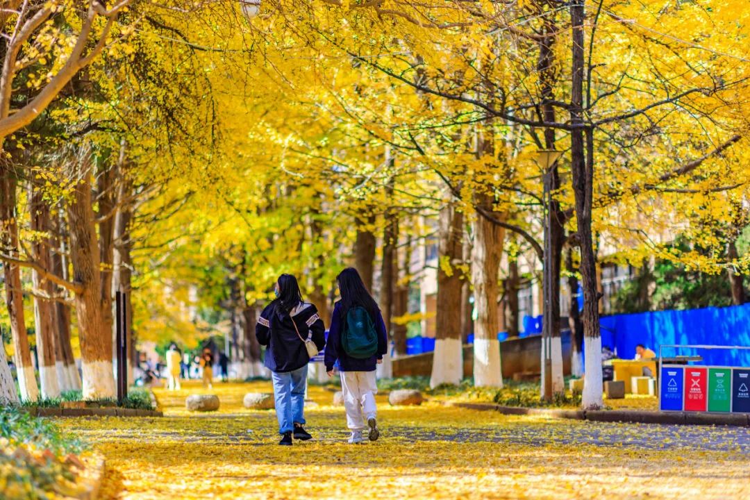 银杏大道上的身影来去匆匆