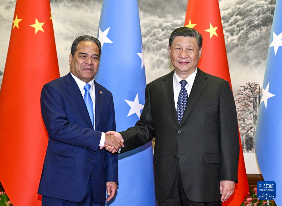 新华社北京4月9日电(记者杨依军)4月9日下午,国家主席习近平在北京人民大会堂同来华进行国事访问的密克罗尼西亚联邦总统西米纳举行会谈。
