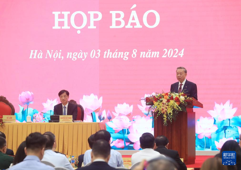 8月3日,在越南河内,苏林出席新闻发布会。新华社/越通社