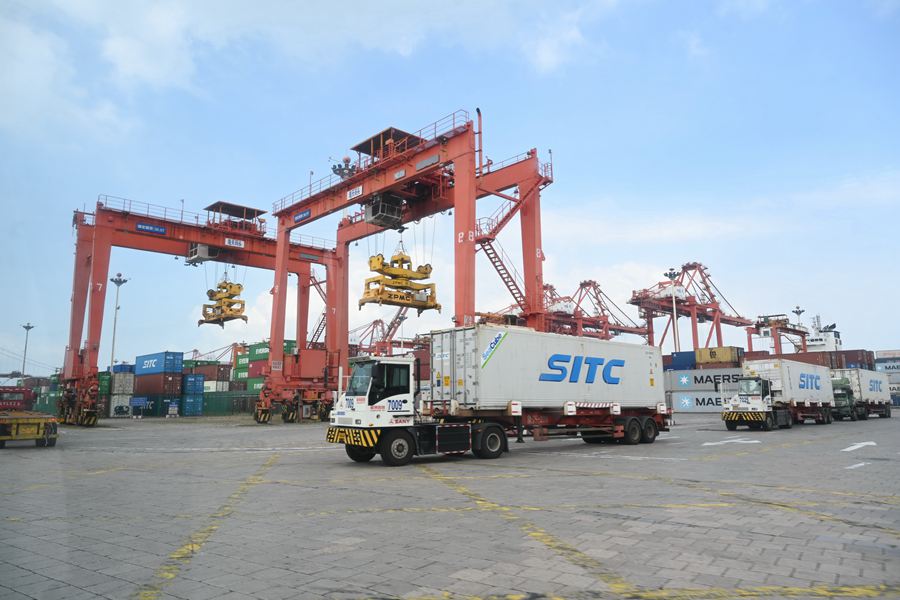 2024年8月6日拍摄的厦门港海天码头作业区一角。新华社记者 林善传 摄
