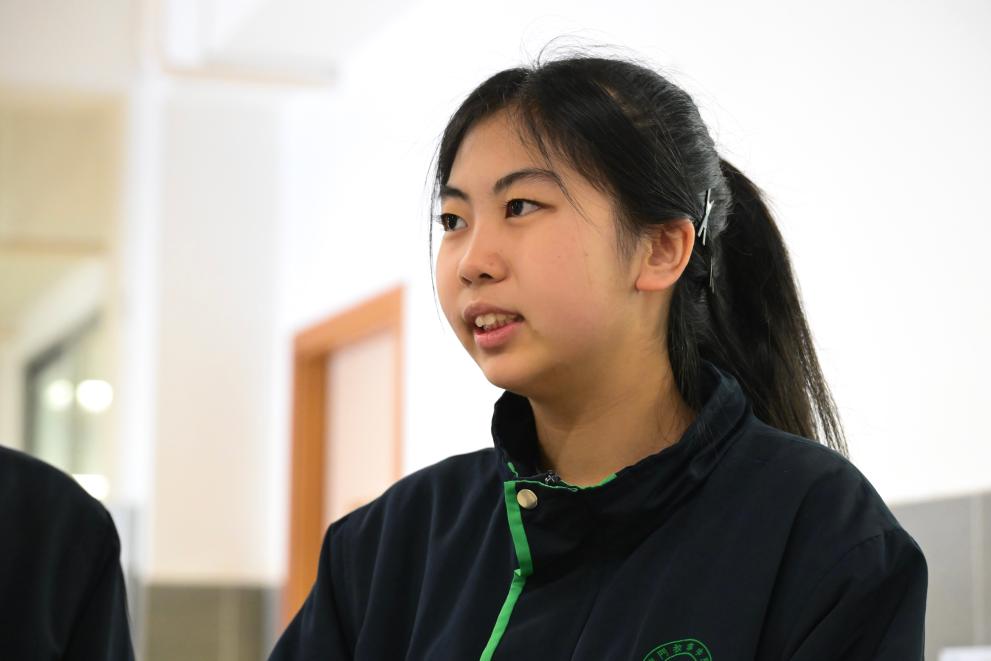 12月17日,澳门教业中学高一学生蒋丽萍在接受采访。新华社记者 朱炜 摄