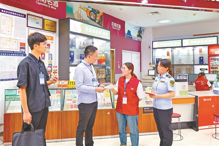 江苏省高邮市纪委监委紧盯违规收送礼品礼金等问题,联合相关部门组建专项督查小组,深入各大商超、烟酒专柜等开展专项监督,从严查处违规收送礼品礼金问题。图为近日,督查小组在市区商超走访了解相关问题线索。谭倩 摄