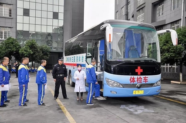 社会三甲医院体检车到四川省司法行政戒毒场所对戒毒人员进行体检。
