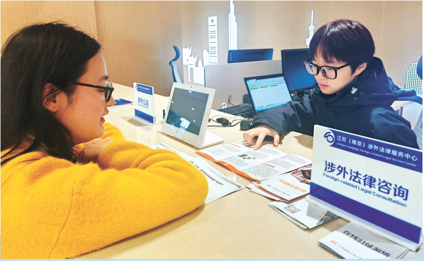 他口中的服务中心,就是由江苏省司法厅、南京市司法局、鼓楼区人民政府三方签约共建,于今年10月13日正式启用的江苏(南京)涉外法律服务中心。在这里,企业可以“一站式”享受涉外公证、涉外仲裁、域外法律查明、国际商事认证、跨境金融保险等一系列涉外法律服务,在助力企业拓展海外市场的同时,使法治成为城市软实力的重要标志。
